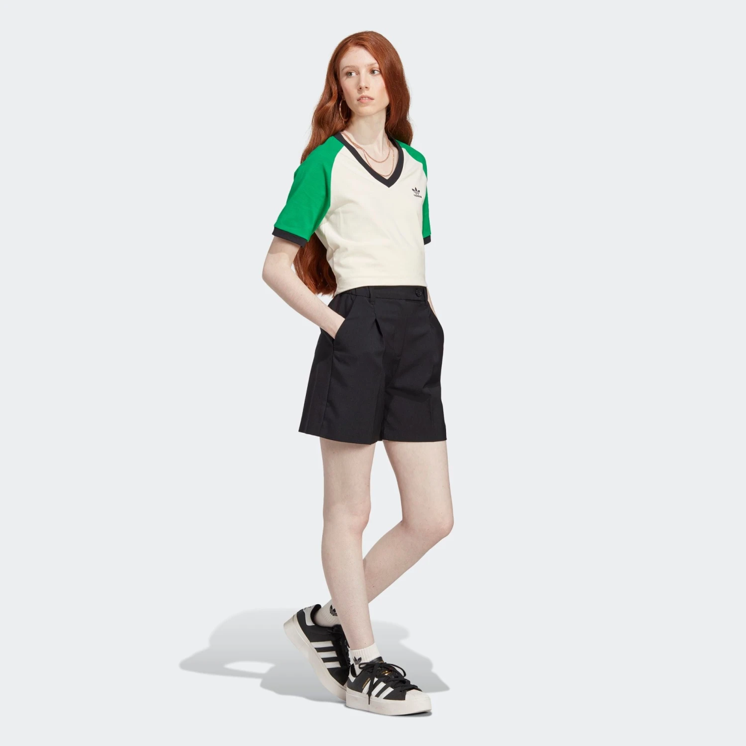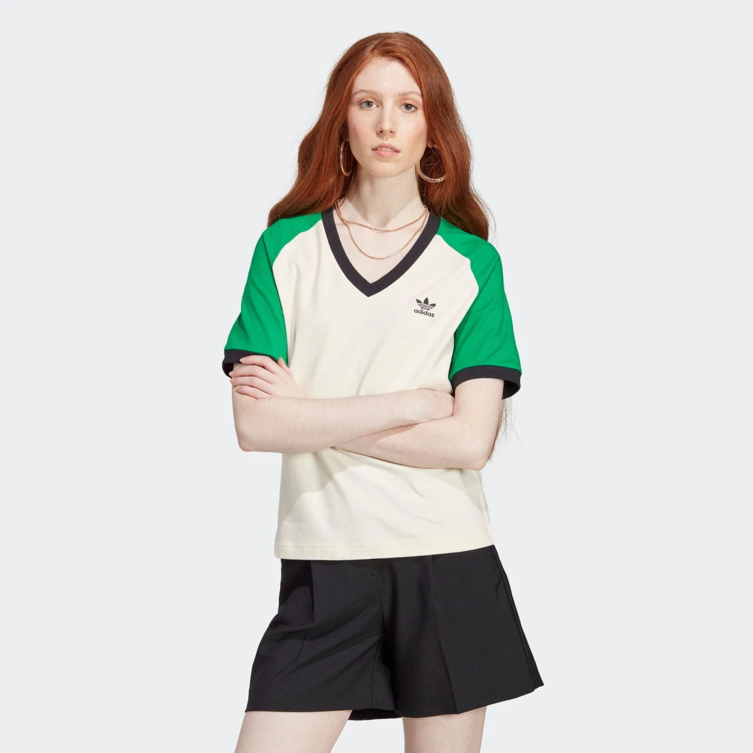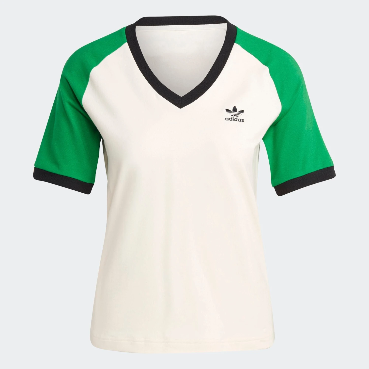 Cette saison de la collection Adicolor 70s revisite des looks d’archive à travers une approche ultra moderne et non genrée. Indéniablement adidas, la collection est une leçon de contrastes : des tons vifs se mêlent à des nuances pastel tandis qu’un mix fun de matières luxueuses donne une nouvelle forme énergique aux silhouettes inspirées des 70’s. — Les designers Originals, Lena Sophie Anders & Christina Witte Le t-shirt à col en V Adicolor 70s Cali célèbre le style de l’époque. Avec sa coupe à la fois nostalgique et moderne, il joue avec de nouveaux coloris sur une silhouette tout droit sortie des archives. Son col en V profond est rehaussé de bords-côtes épais et premium aux couleurs contrastées. Le logo brodé atteste de ses racines sport. Encolure en V côtelée.. Jersey 93 % coton, 7 % élasthanne.. Emmanchures côtelées..