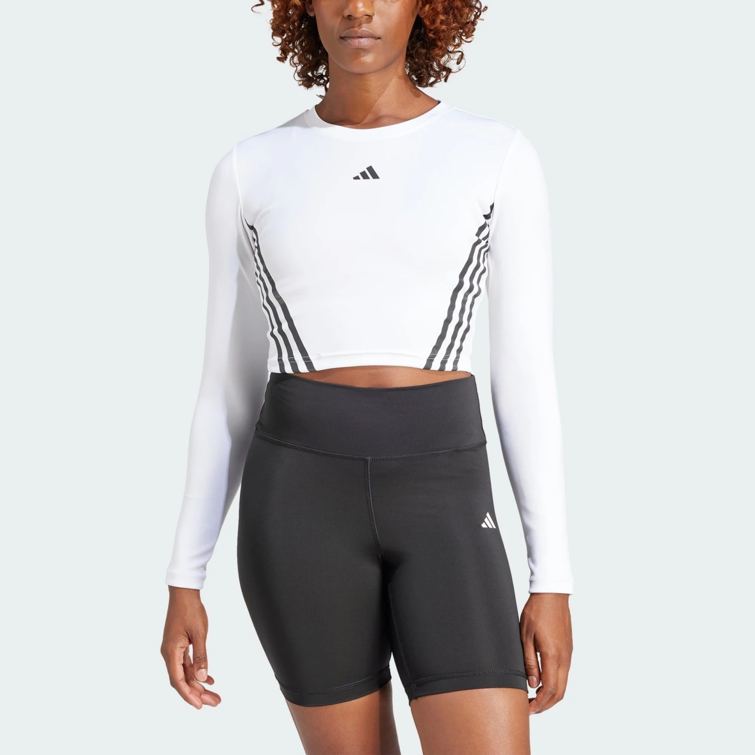 La nouvelle collection adidas Hyperglam est faite pour sexprimer, avec un style qui te représente. Ce crop top moulant est à la fois doux et stretch. La technologie AEROREADY évacue la transpiration pour te garder confortablement au sec, tandis que les 3 bandes obliques de chaque côté ajoutent une touche adidas authentique. Conçu à partir de matières recyclées, et contenant 70 % minimum de matériaux recyclés, ce produit ne constitue quune de nos solutions pour lutter contre les déchets plastiques. Coupe moulante.. Col ras-du-cou.. Interlock 89 % polyester recyclé, 11 % élasthanne.. AEROREADY.. Coupe cropped..